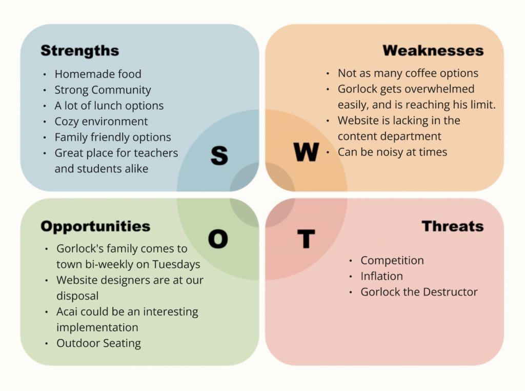 In this assignment, I was tasked with rebranding a coffee shop of my choosing to make it stand out from the competition. In order to do this, I needed to know who my competition even is, and how I can offer something that nobody else is.
